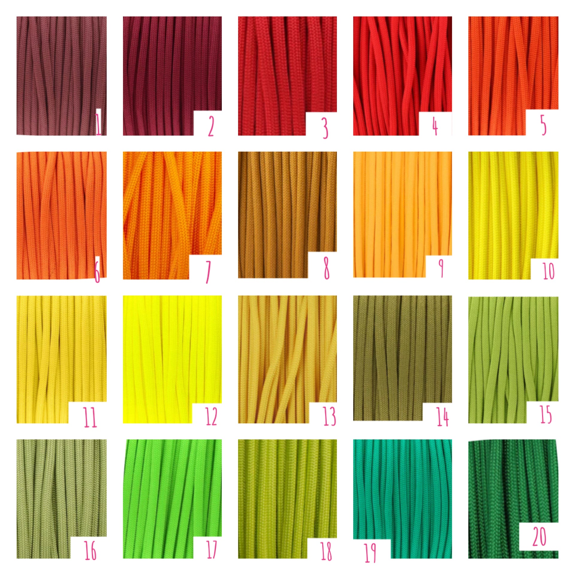 - kombiniere bis zu drei Paracordfarben für das Fischgrätmuster