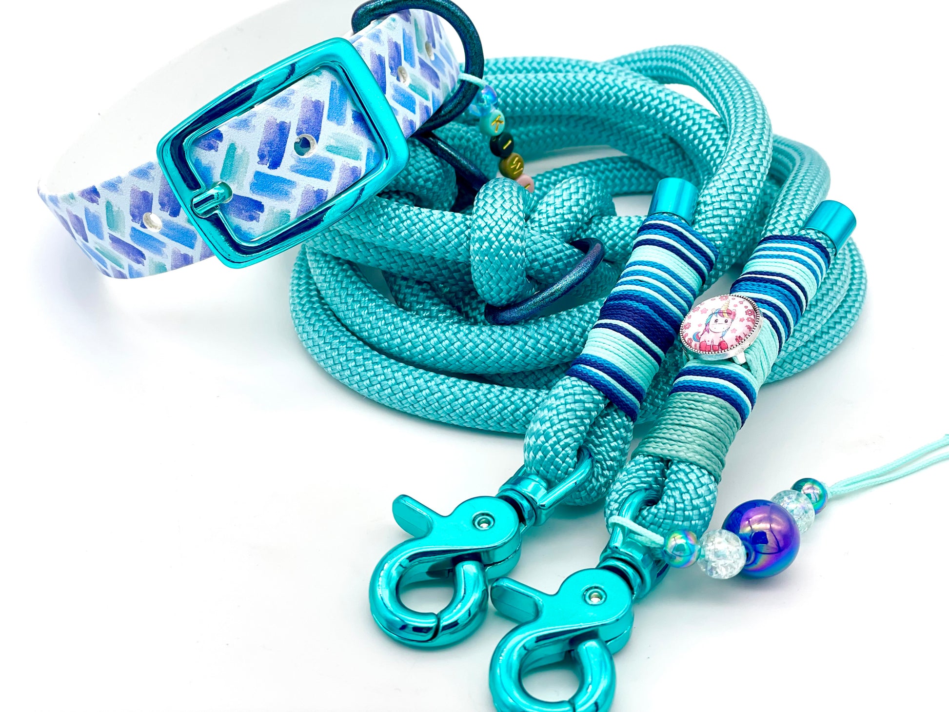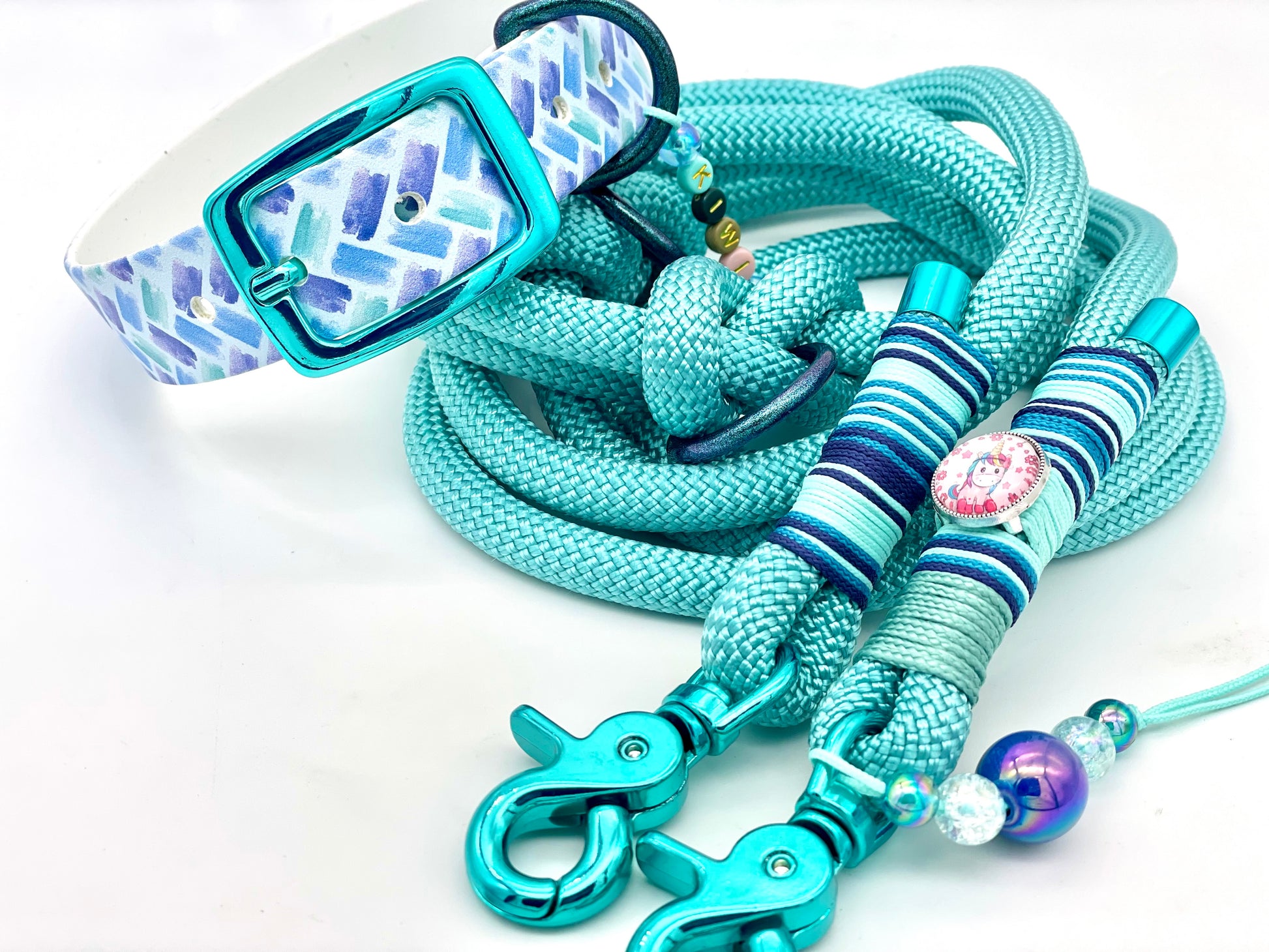 Da jede Leine ein Unikat ist kann die Takelung abweichen.. Das Grundgerüst der Farben bleibt aber ☺️..es sei denn du hast einen Sonderwunsch.