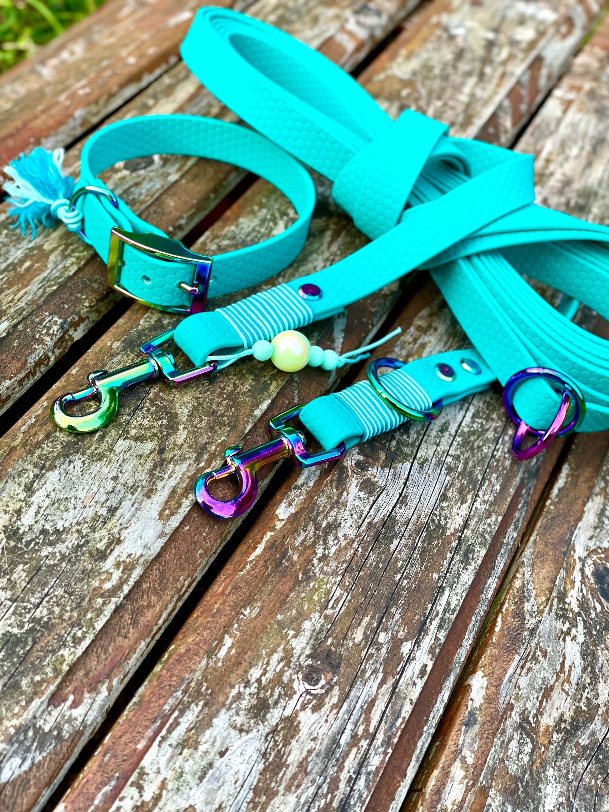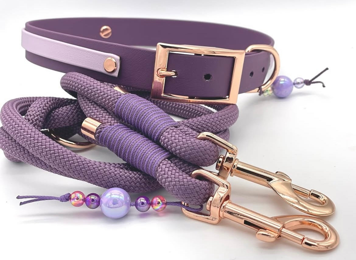 Das Set von Bild 3 und 4 ist aus Hexa, Hexa hat ein Wanenmuster und ist viel flexibler als Biothane. - diese Leinen mache ich nur auf Anfrage.. schreib mir doch gern über die Chat Funktion ☺️