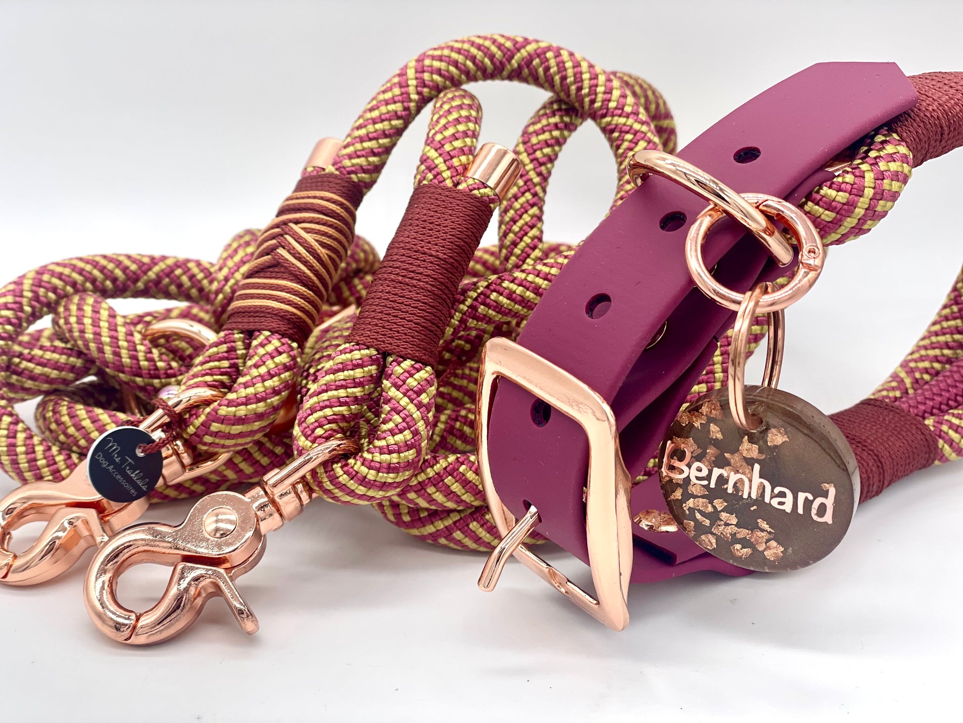 Das Set „Poesie“ steht für Eleganz, Harmonie und Alltagstauglichkeit. Warme Beerentöne treffen auf hochwertige Beschläge und sorgfältige Handarbeit. Ein stilvolles Hundeset für alle, die Funktionalität und Design verbinden möchten.