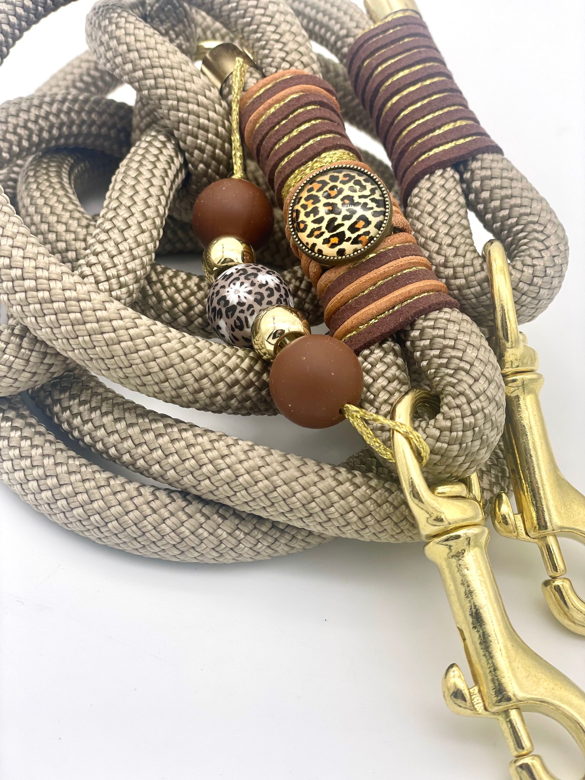 Diese Leine aus einem 10mm Dogleash ist ca 170cm lang mit einem verstellbaren Ring.