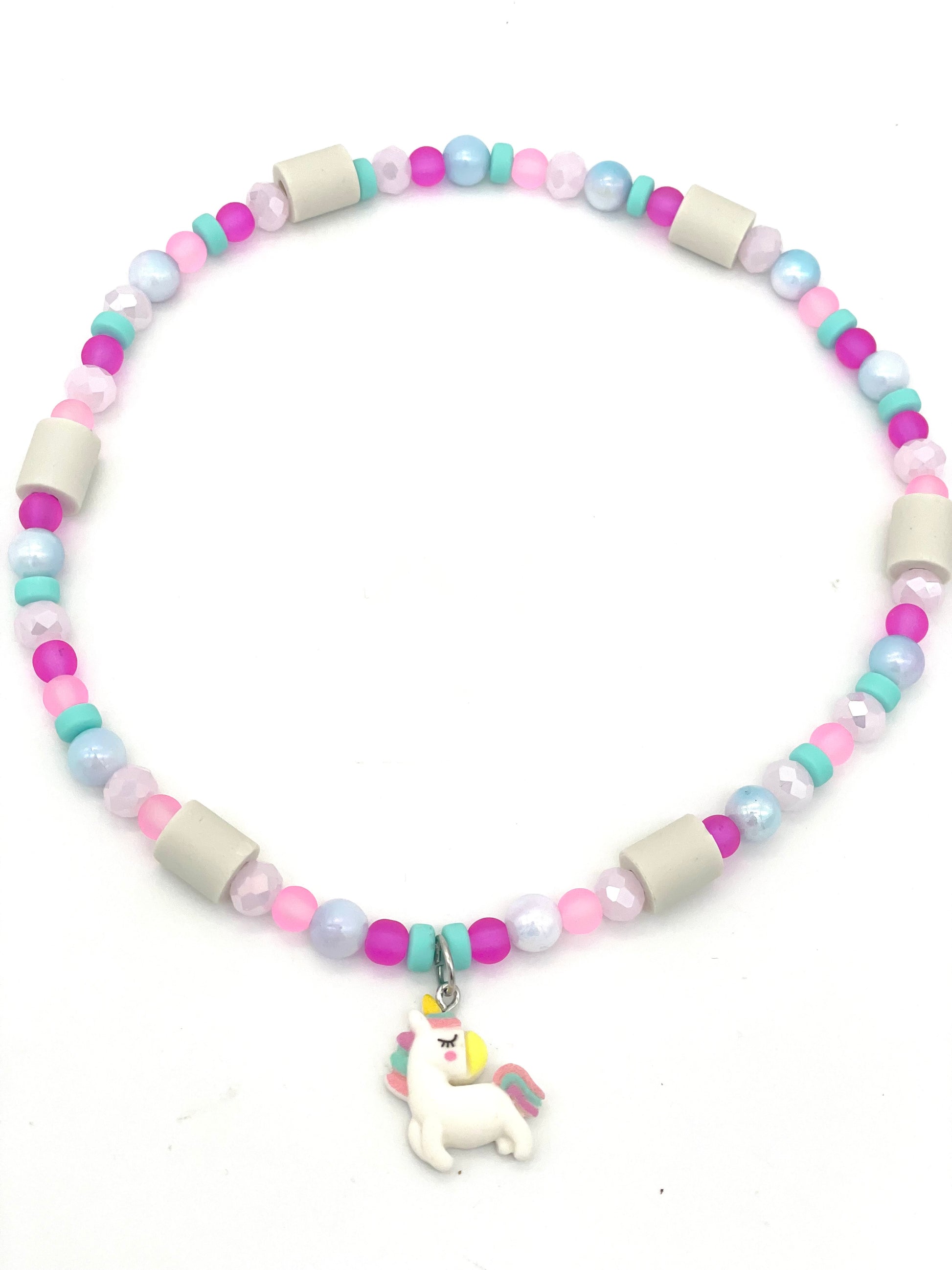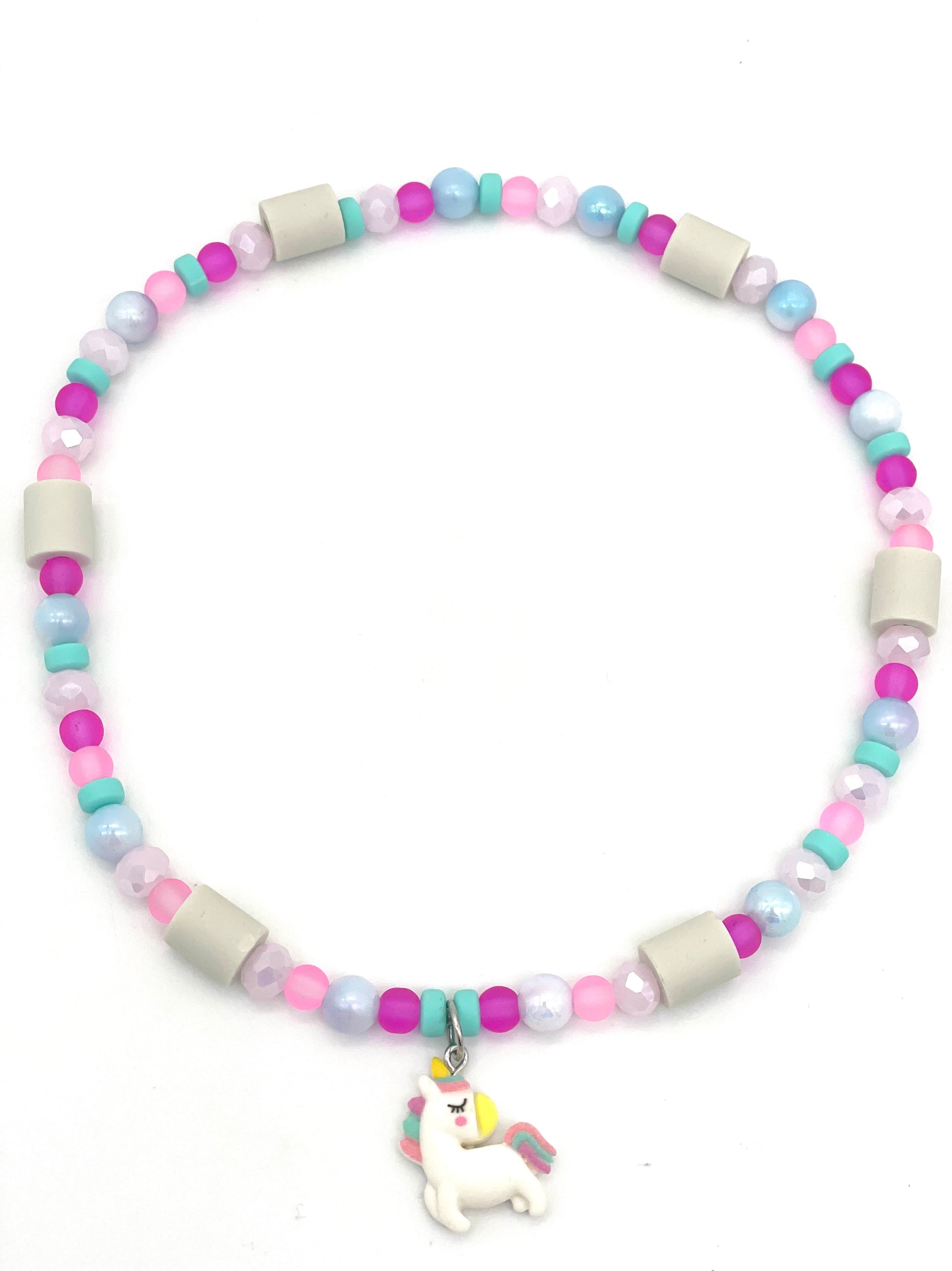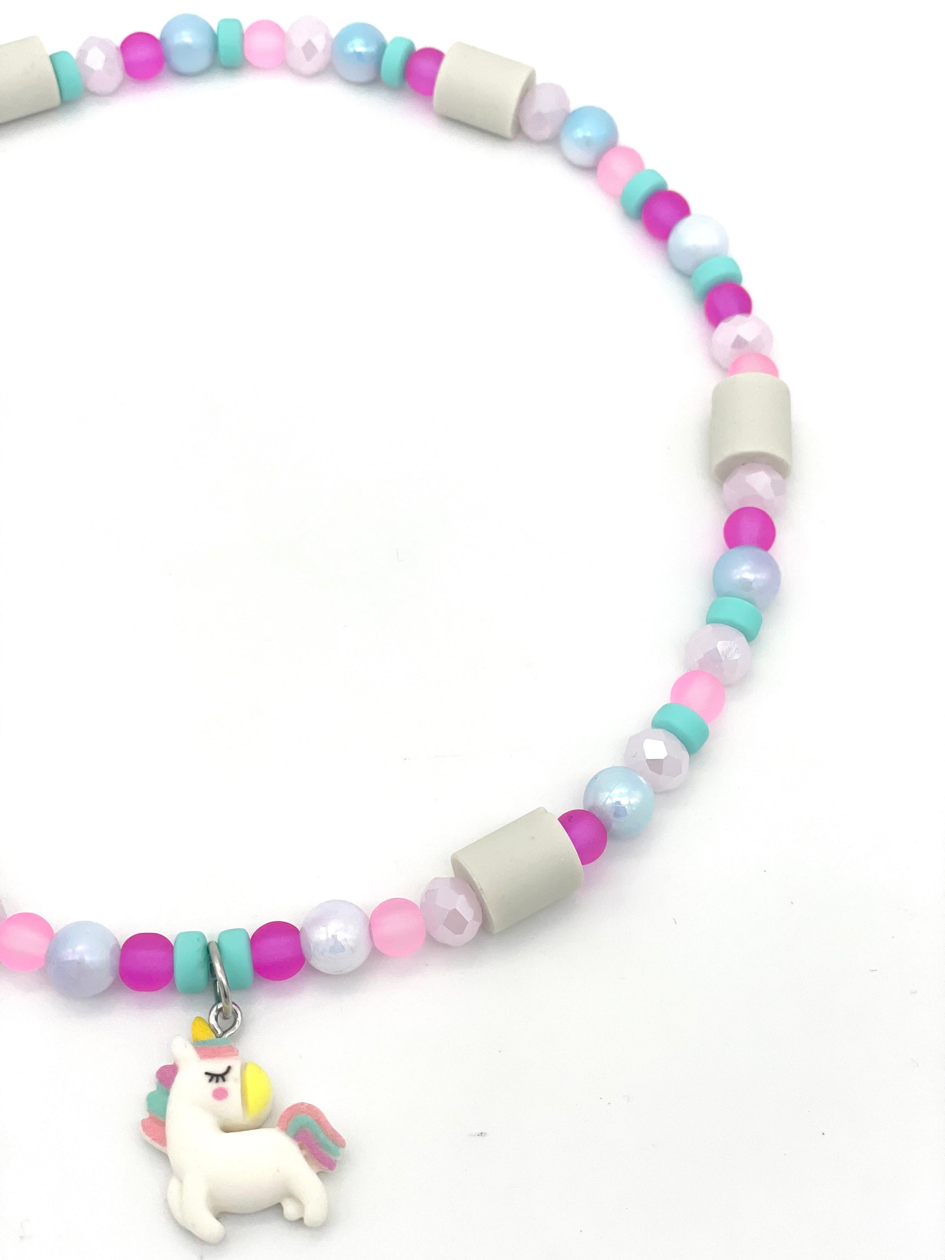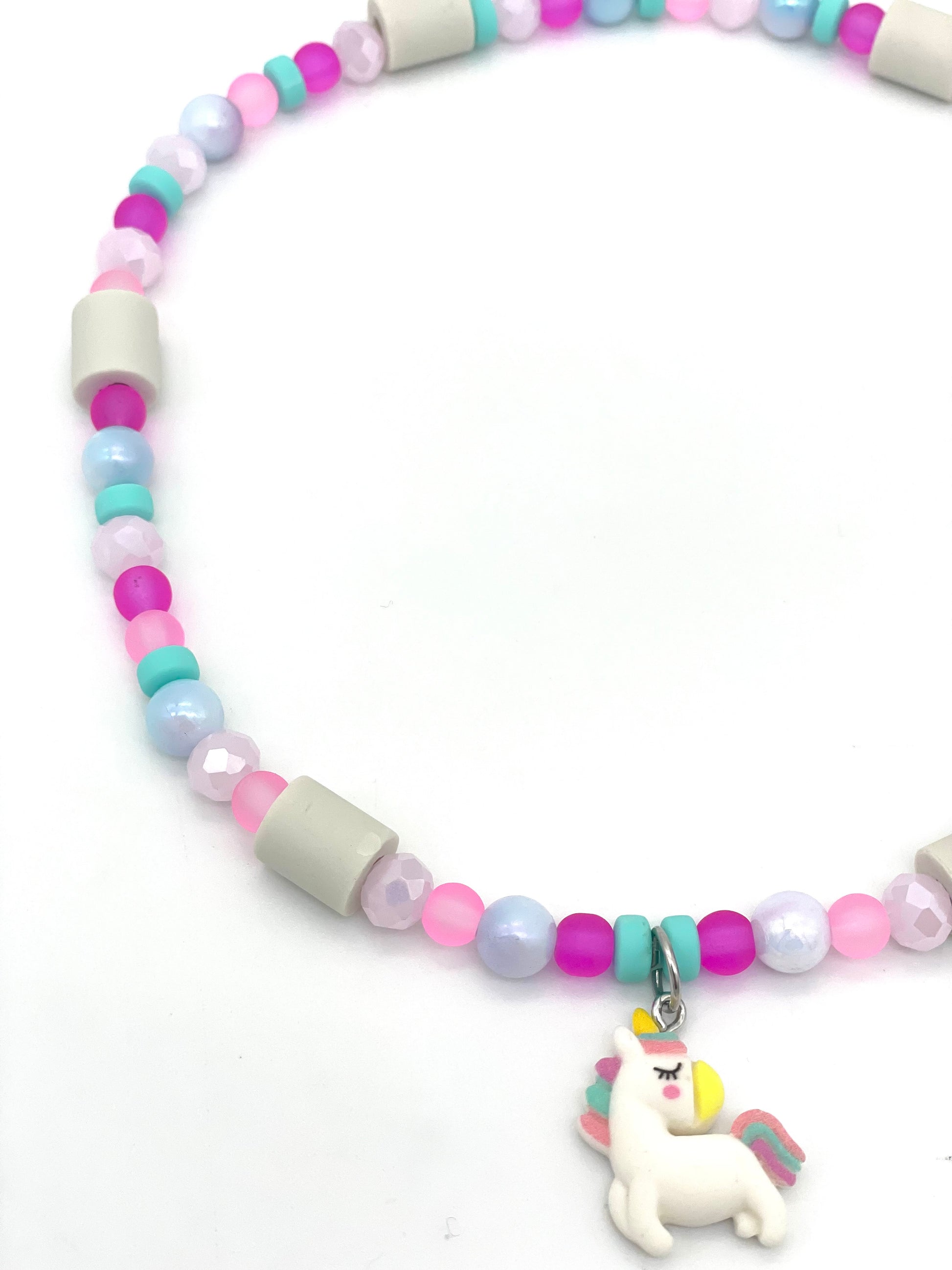 Das Halsband besteht aus einer Mischung von Acrylperlen, Silikonperlen, Glasschliffperlen sowie den Pipes